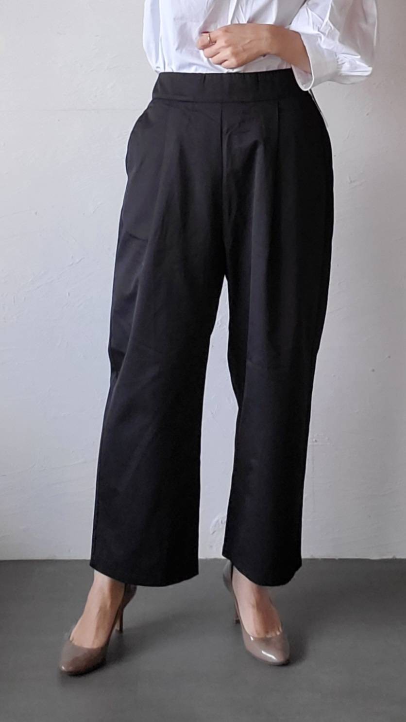 ヒップにボリューム感を持たせたタックパンツ