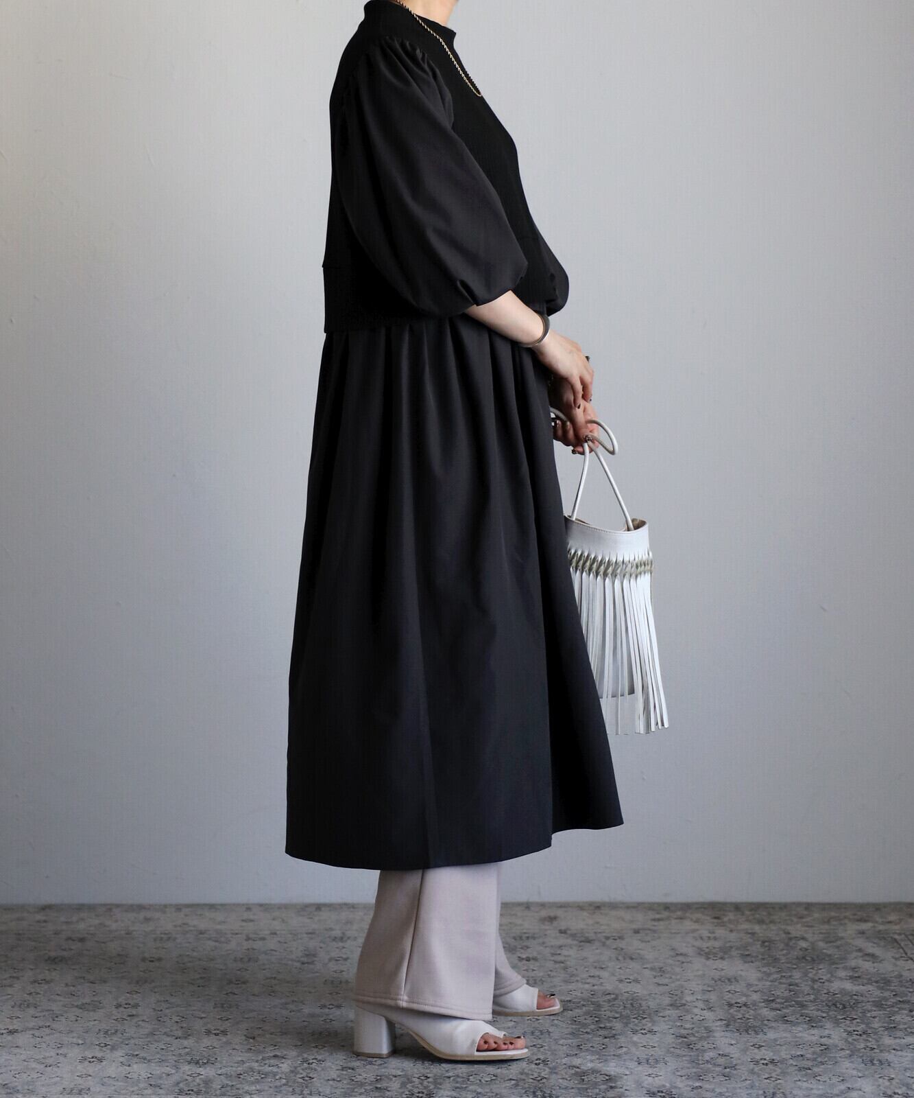 ゆったりシルエットのワンピースなので、1枚でもさらりと着るだけでもOK♪