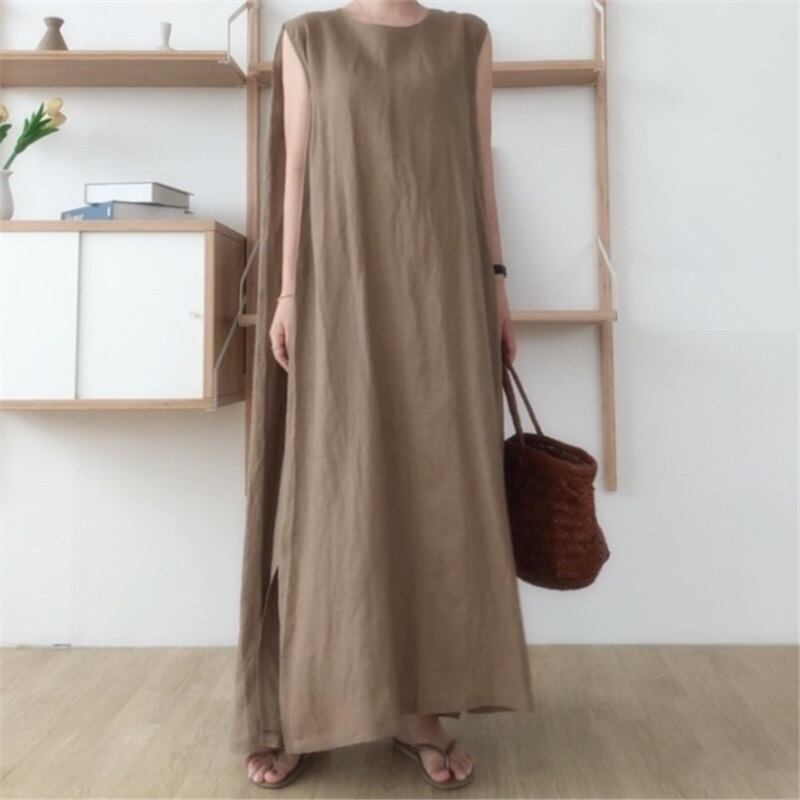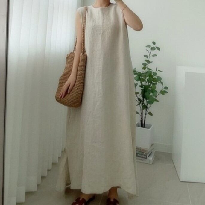 シンプルなノースリーブワンピース。